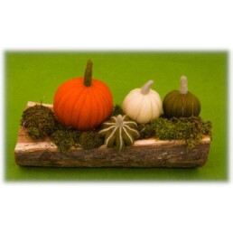 Voor de workshop naaldvilten voor beginners ben ik altijd op zoek naar eenvoudige ontwerpen die deelnemers gemakkelijk na kunnen maken. De herfst met zijn prachtige pompoenen is hiervoor een goede inspiratiebron. Met een bolletje vulwol en een ijzerdraadje voor het steeltje heb je snel een kleurige pompoen gevilt. Ook leuk om cadeau te doen.